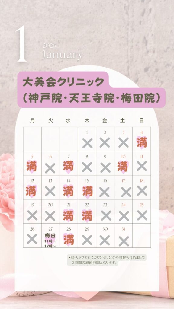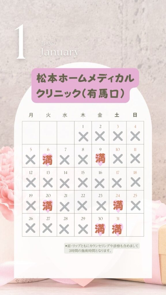 眉・リップ同日施術ご希望の場合は、5〜6時間となります。