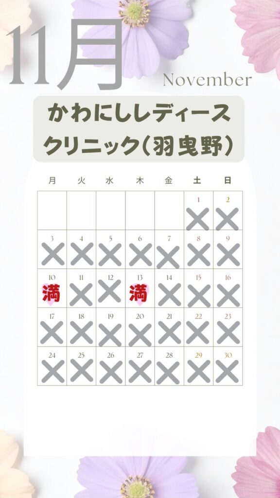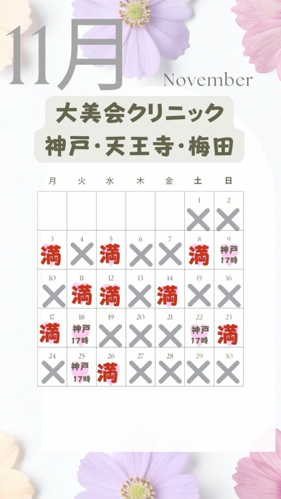 何も記入していない♡マークのお日にちは、各院ご予約可能となっております。